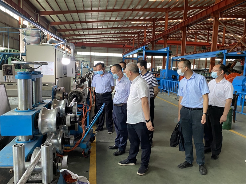 2021年8月11日上午,懷化市市委常委、市委秘書長唐浩然帶領市財政局、市工信局、市市場監(jiān)管局、市人社局等7部門有關負責同志,在懷化高新區(qū)黨工委書記張喜松等園區(qū)有關領導陪同下,蒞臨湖南湘鶴集團電纜科技股份有限公司指導調研,并召開座談會。公司董事長王茂卿、總經(jīng)理王茂楓、生產(chǎn)總經(jīng)理汪振武等公司高管參加了此次會議。