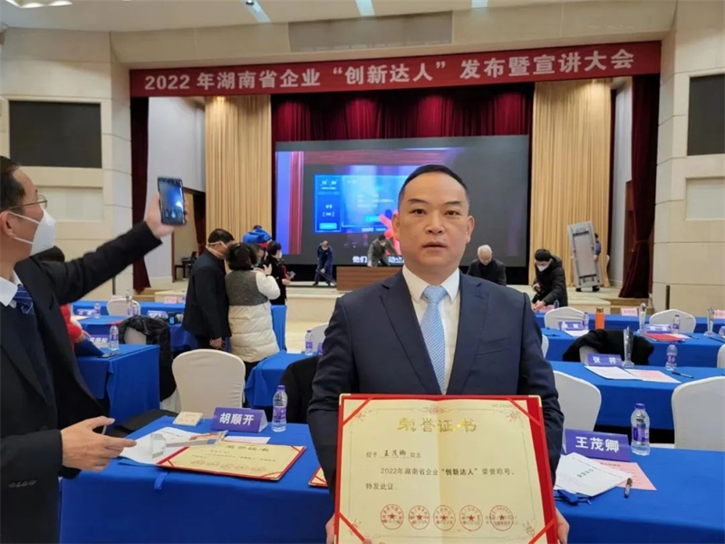 熱烈祝賀湖南湘鶴集團董事長王茂卿榮獲“湖南省企業創新達人”榮譽稱號