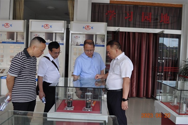 陳夕林秘書長一行參觀了企業產品展廳、生產線及企業研發檢測中心,并詳細了解企業產品創新亮點及企業當前生產經營情況。當了解到公司已成立省級企業技術中心、電線電纜新材料省級工程研究中心,并獲批國家級專精特新小巨人企業時,領導對我公司能始終堅持創新引領,對品質精益求精的發展理念給予了充分肯定和贊揚,并鼓勵企業抓住機遇,迎難而上,充分利用自身優勢,立足本省,輻射區全國,做大做強湘鶴品牌,為我省實現“三高四新”做出新的、更大貢獻!