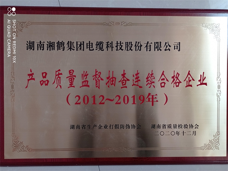 “湖南省產品質量監督抽查連續8年(2012年-2019年)合格企業”