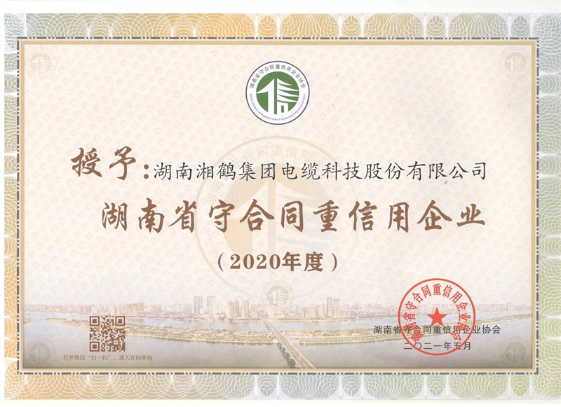熱烈祝賀湖南湘鶴集團榮獲2020年度“湖南省守合同重信用企業(yè)”