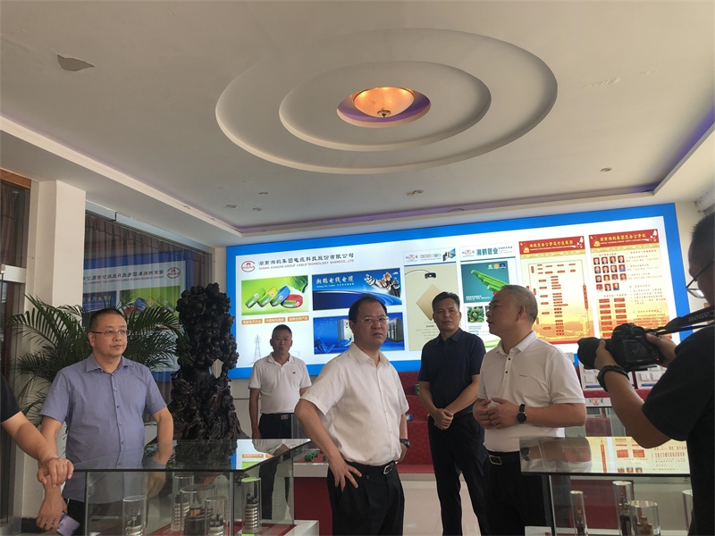 2021年7月27日下午,懷化市委副書(shū)記周振宇等市領(lǐng)導(dǎo)一行在高新區(qū)管委會(huì)主任向華等有關(guān)園區(qū)領(lǐng)導(dǎo)陪同下蒞臨湖南湘鶴集團(tuán)電纜科技股份有限公司調(diào)研了解企業(yè)發(fā)展經(jīng)營(yíng)情況。湖南湘鶴集團(tuán)電纜科技股份有限公司董事長(zhǎng)王茂卿、總經(jīng)理王茂楓、生產(chǎn)總經(jīng)理汪振武等公司領(lǐng)導(dǎo)全程陪同并向領(lǐng)導(dǎo)詳細(xì)匯報(bào)企業(yè)上半年生產(chǎn)經(jīng)營(yíng)情況。周振宇一行深入車(chē)間詳細(xì)了解了企業(yè)產(chǎn)品創(chuàng)新研情況,參觀了企業(yè)研發(fā)中心實(shí)驗(yàn)室及先進(jìn)的產(chǎn)品生產(chǎn)線,并對(duì)公司近年來(lái)在產(chǎn)品創(chuàng)新研發(fā)取得的成績(jī)及獲評(píng)國(guó)家工信部“小巨人”企業(yè)、湖南省品牌培育示范企業(yè)給予充分肯定。鼓勵(lì)公司抓住十四五期間湖南打造“三高四新”戰(zhàn)略機(jī)遇,主動(dòng)作為加快實(shí)現(xiàn)企業(yè)跨越式發(fā)展。